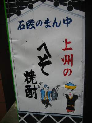 伊香保の石段出発地点にてポーズを決める某Mさん。